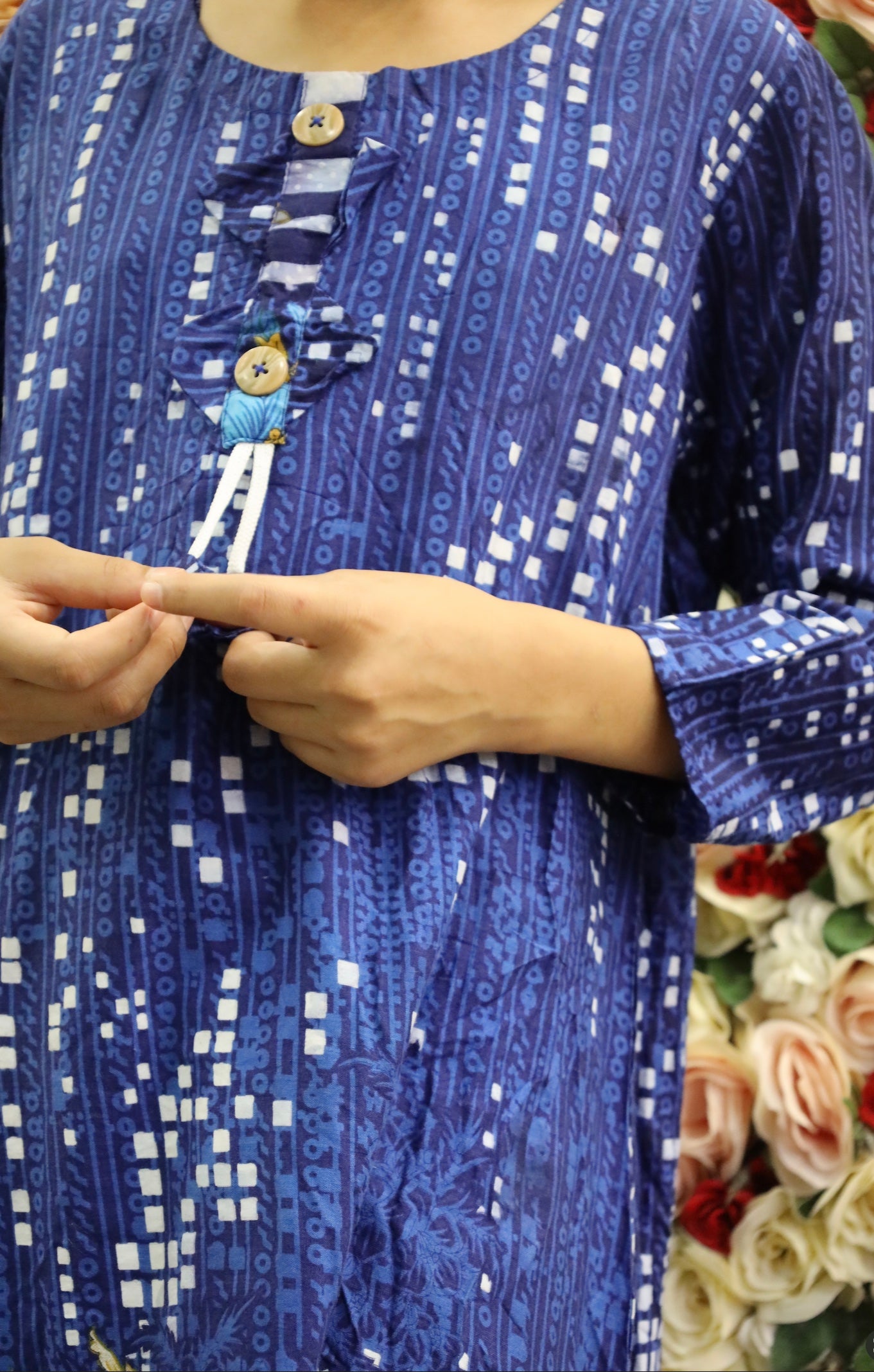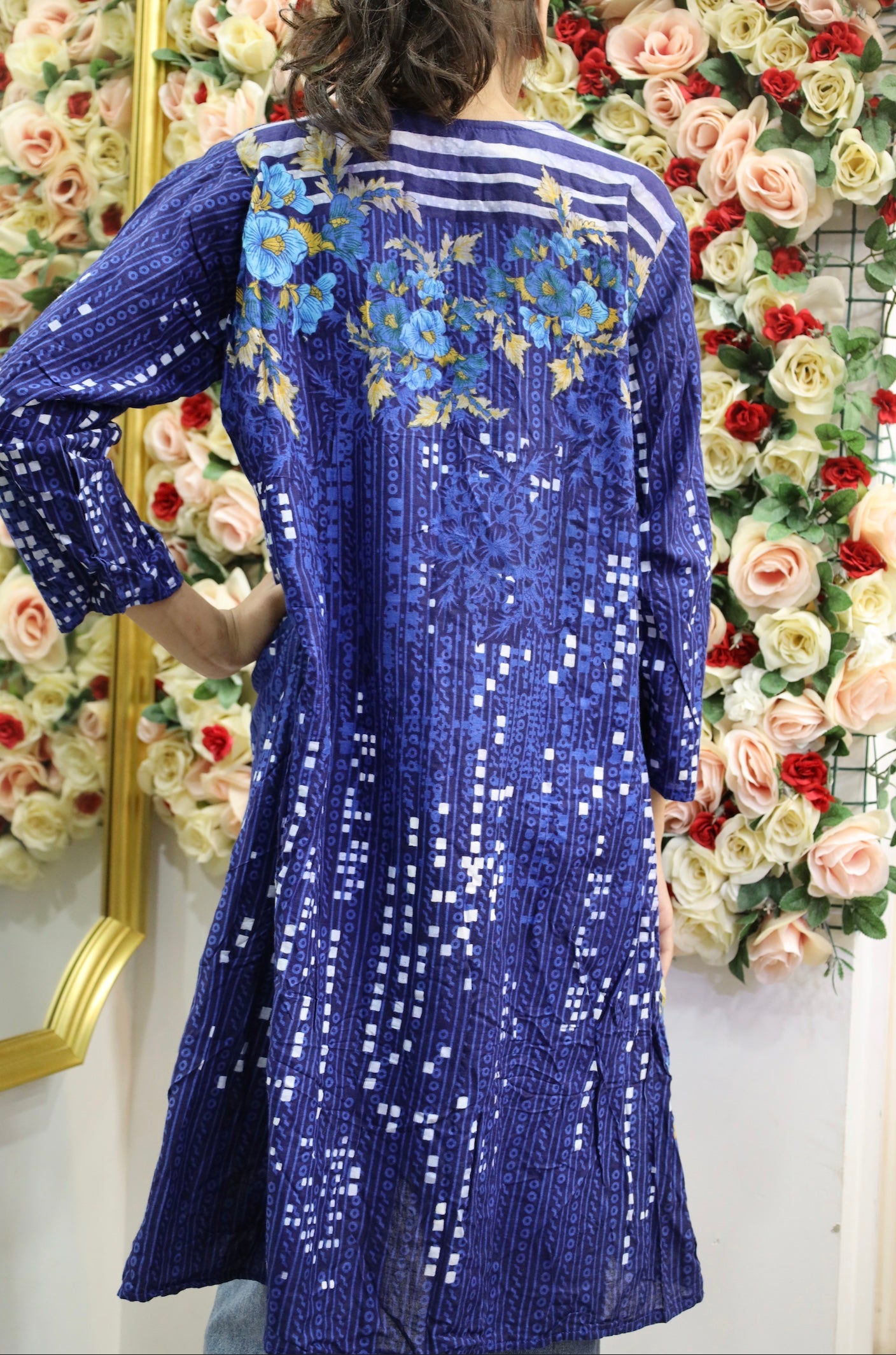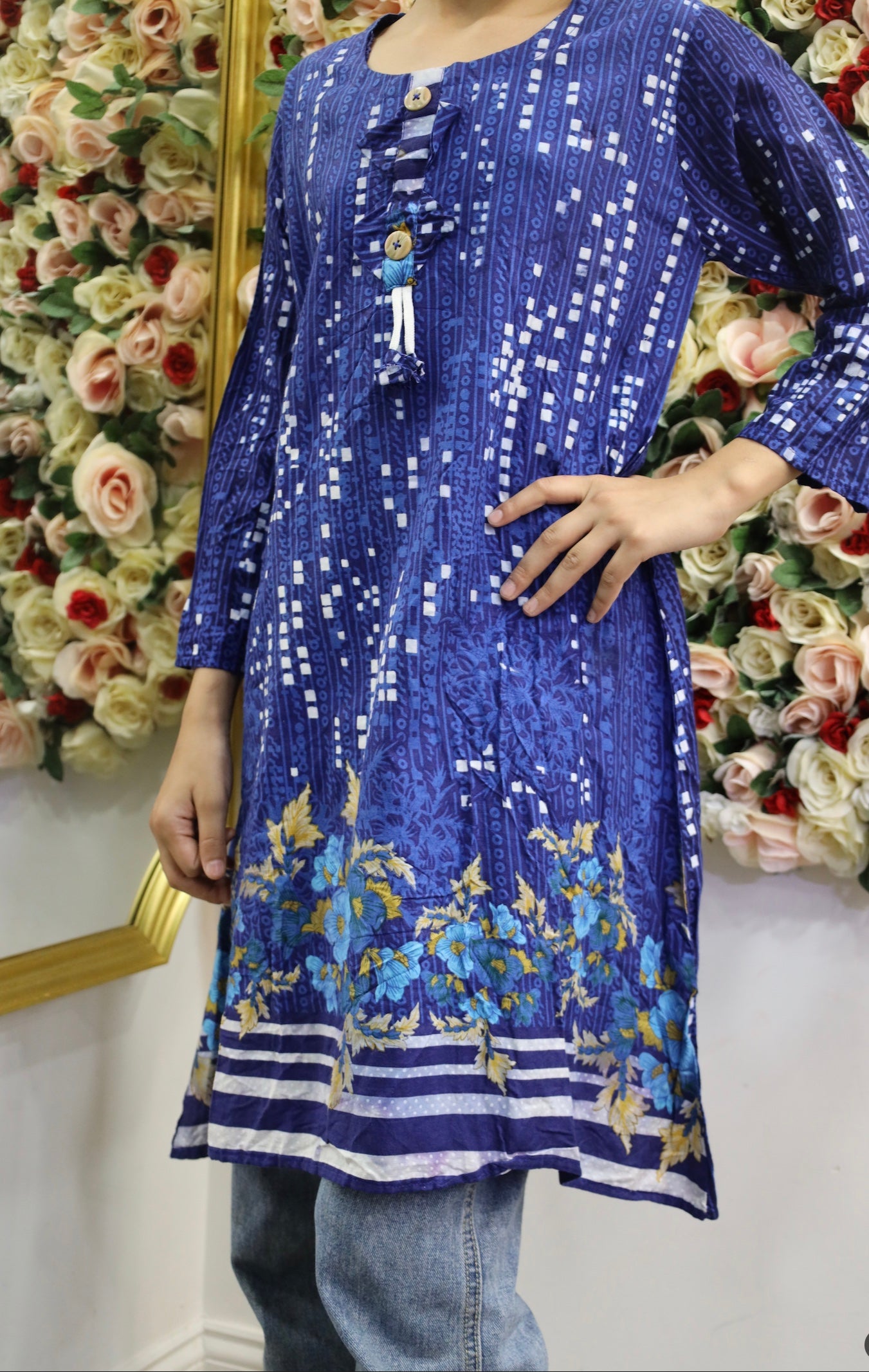 Elegant Blue Printed Lawn Kurti Add a touch of charm to your wardrobe with this beautifully designed blue lawn kurti....