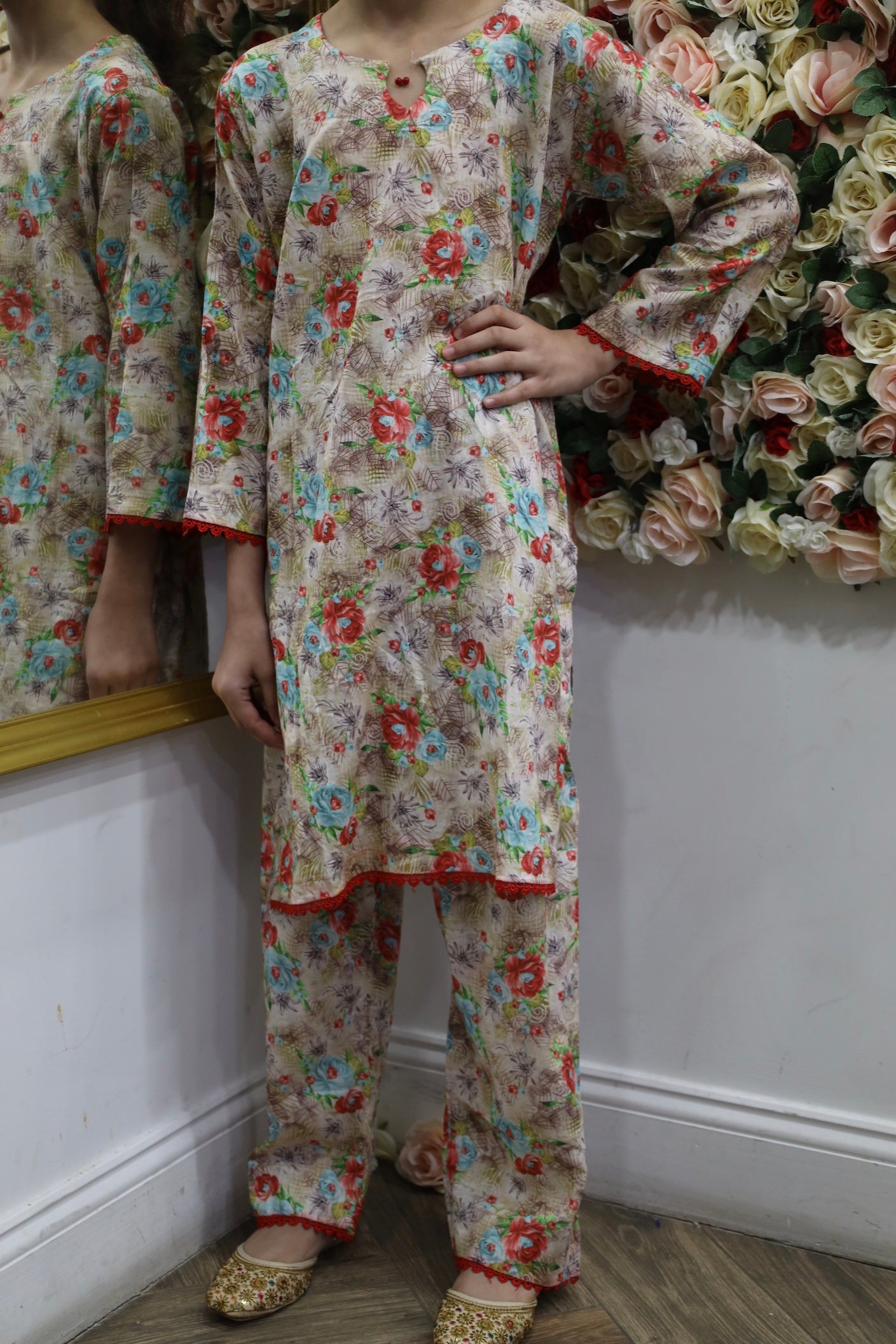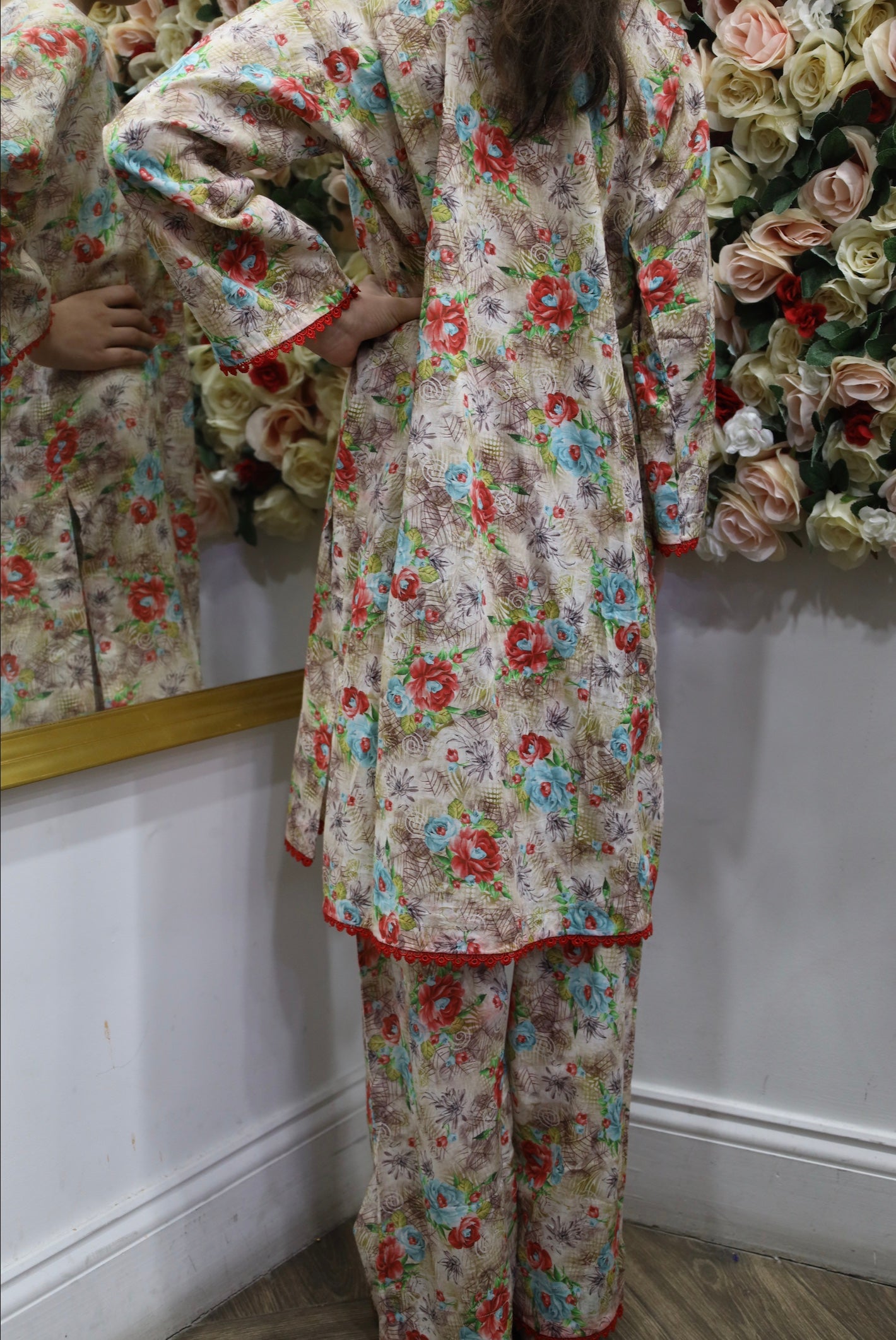 Girls' 2-Piece Lawn Suit – Floral Print | Summer Collection