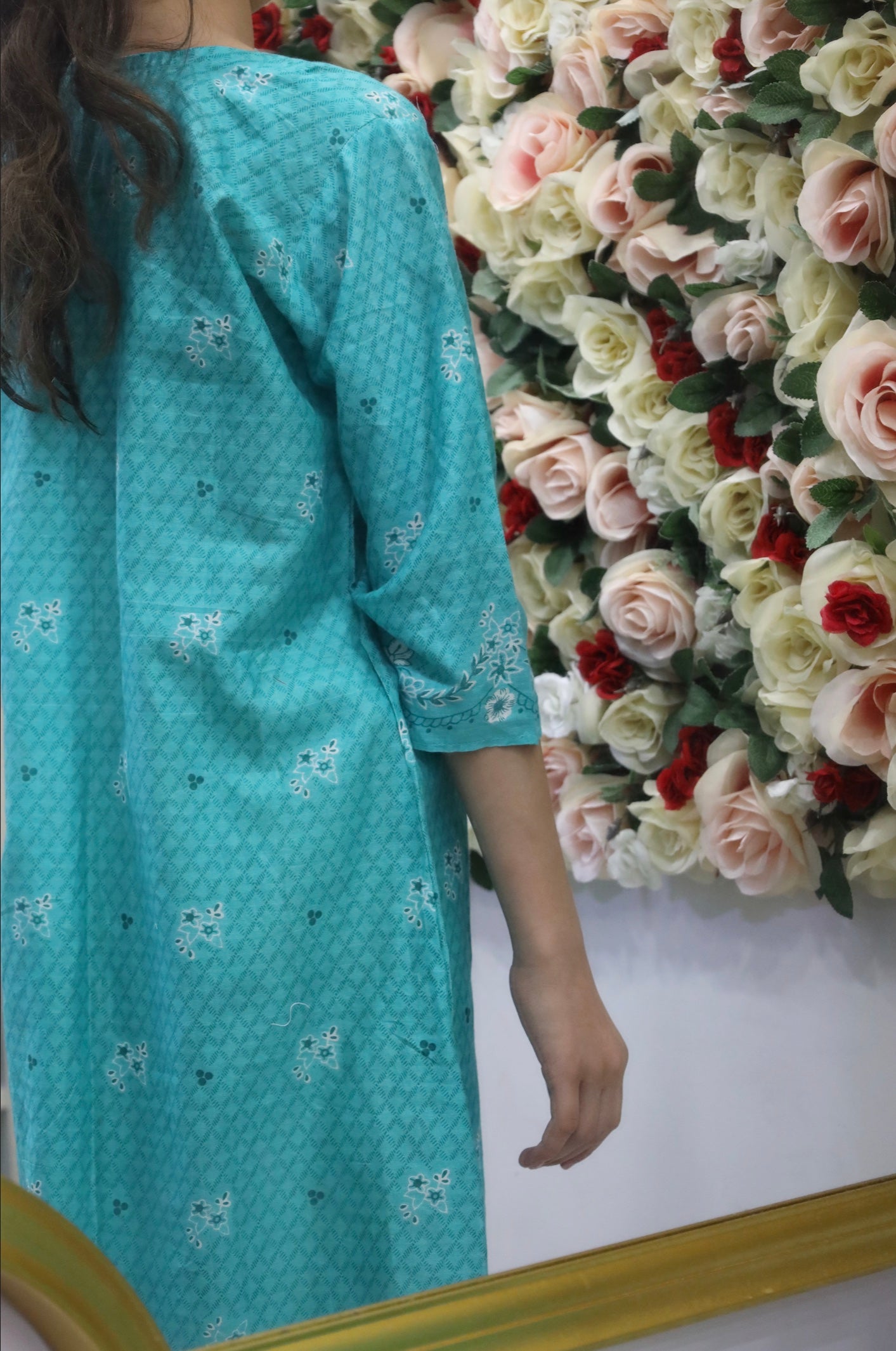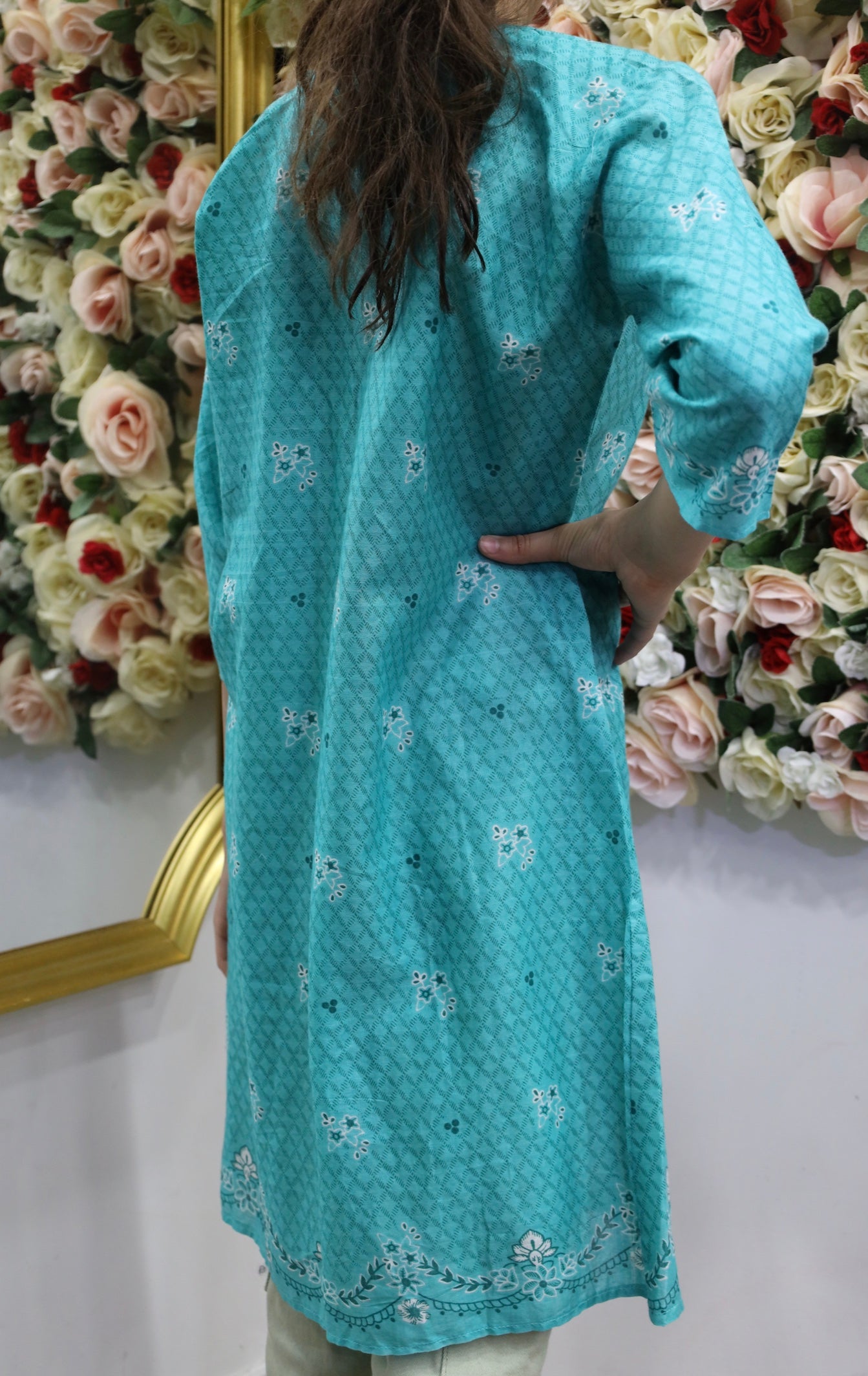 Girls’ Aqua Blue Printed Kurti – Casual & Comfortable