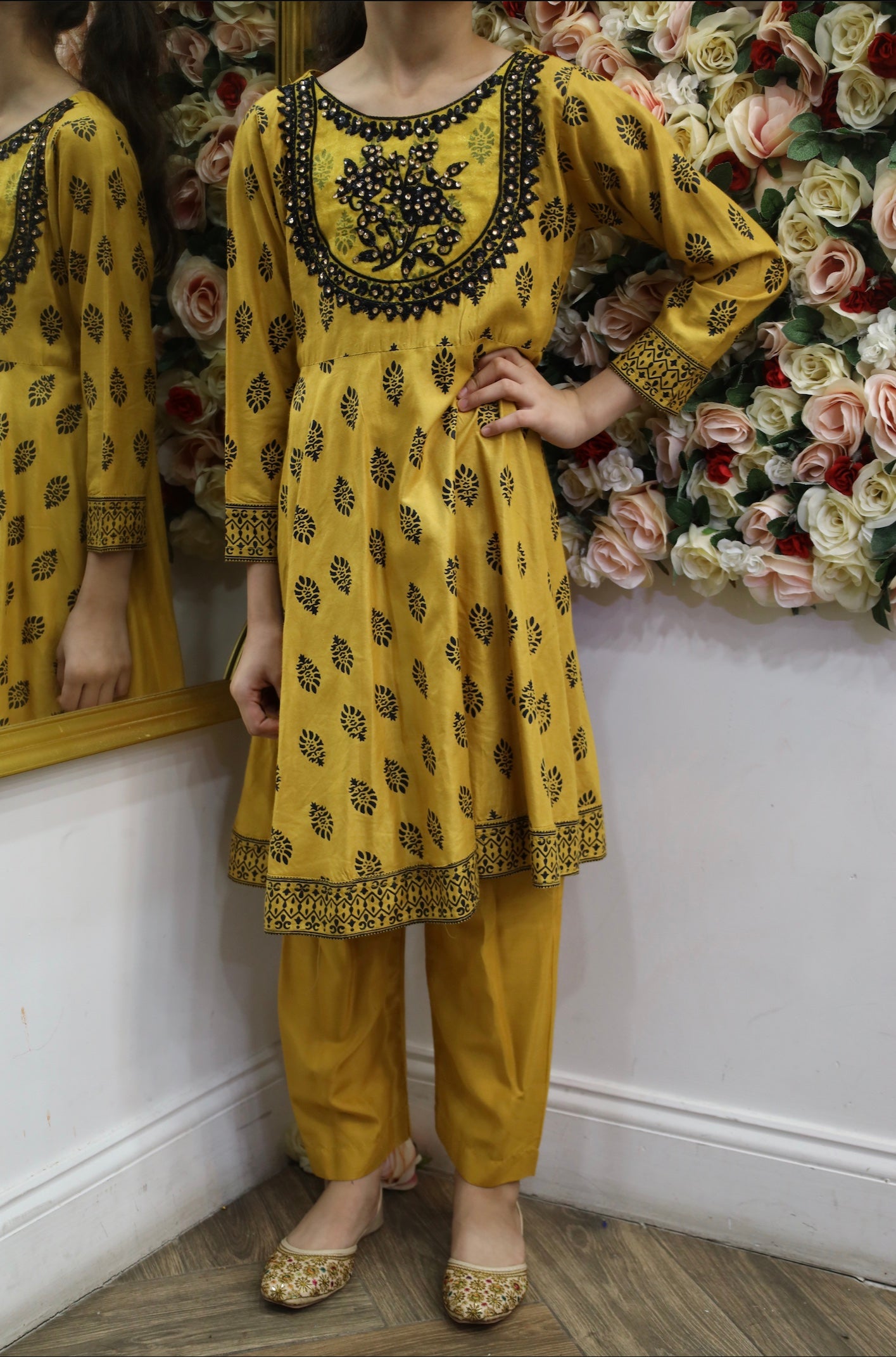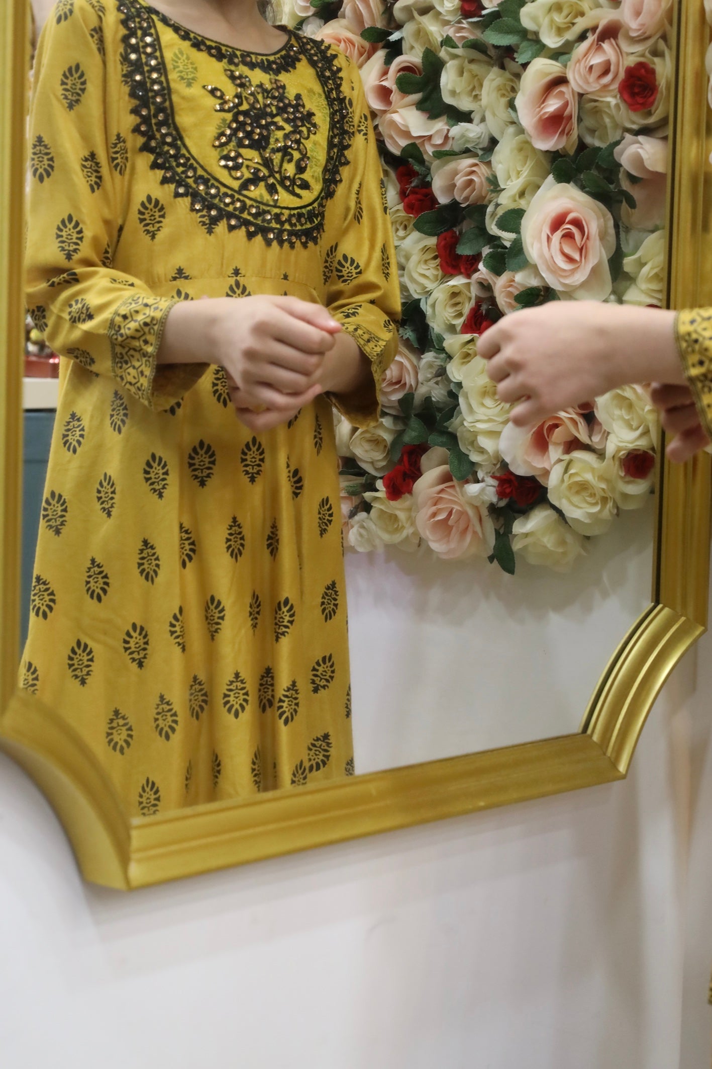 Add timeless elegance to your girl's festive wardrobe with this stunning mustard yellow 2-piece lawn suit. Made from breathable lawn fabric, this outfit offers comfort with a rich traditional appeal – ideal for special occasions, Eid, weddings, or cultural celebrations.
