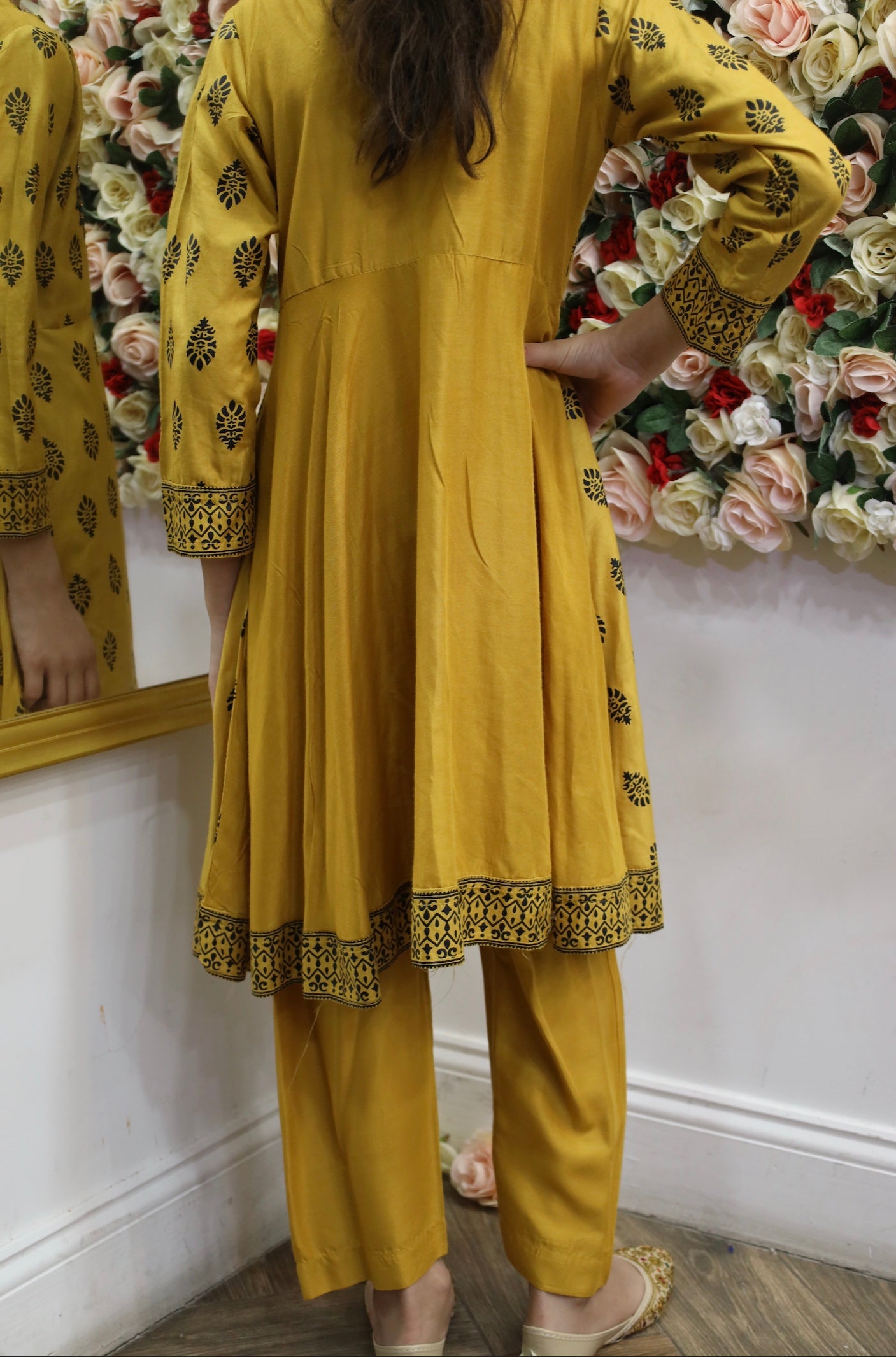 This suit combines tradition and trend with its classic block print, elegant flare, and delicate embellishments – making your little one stand out with grace.