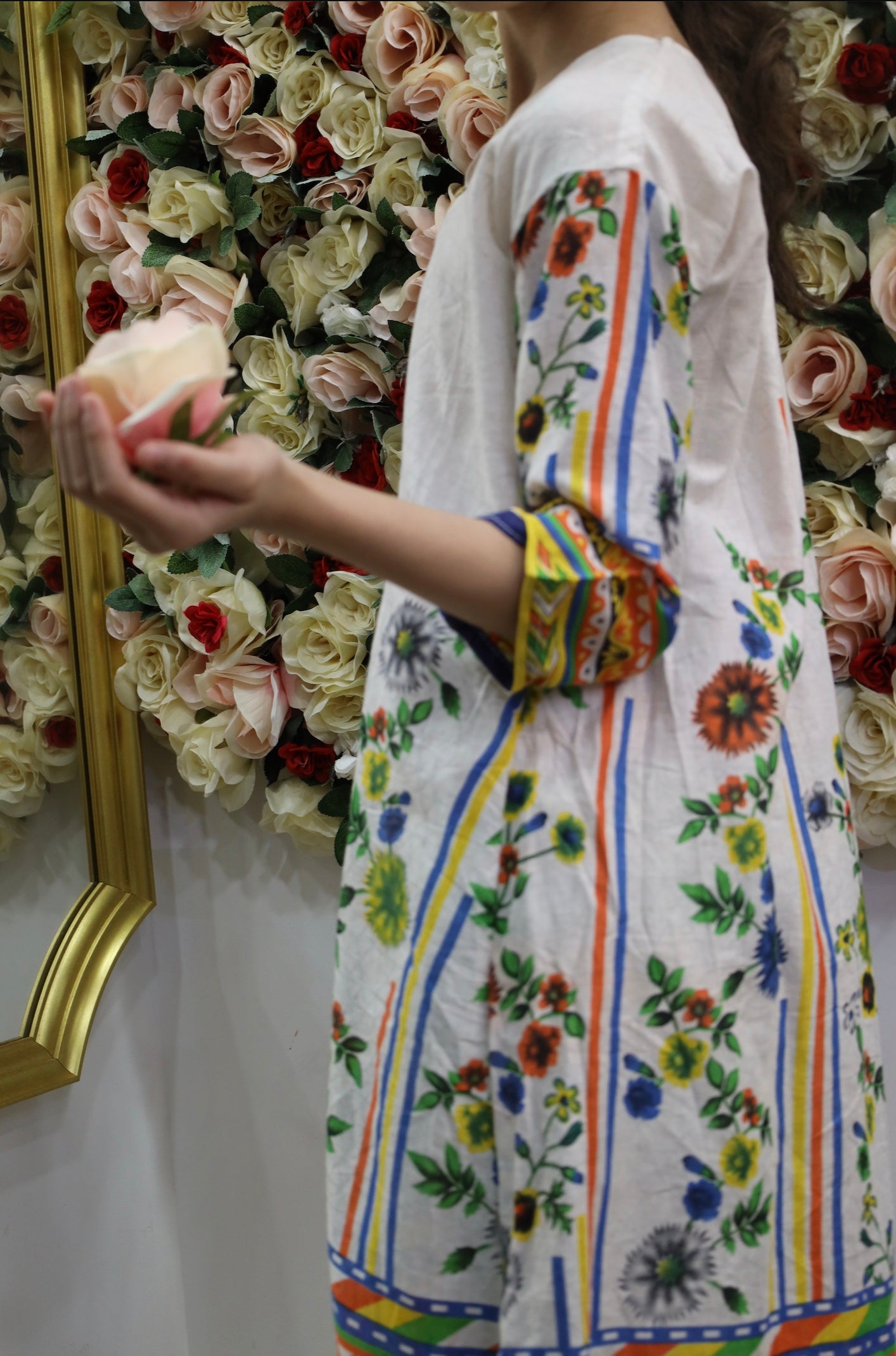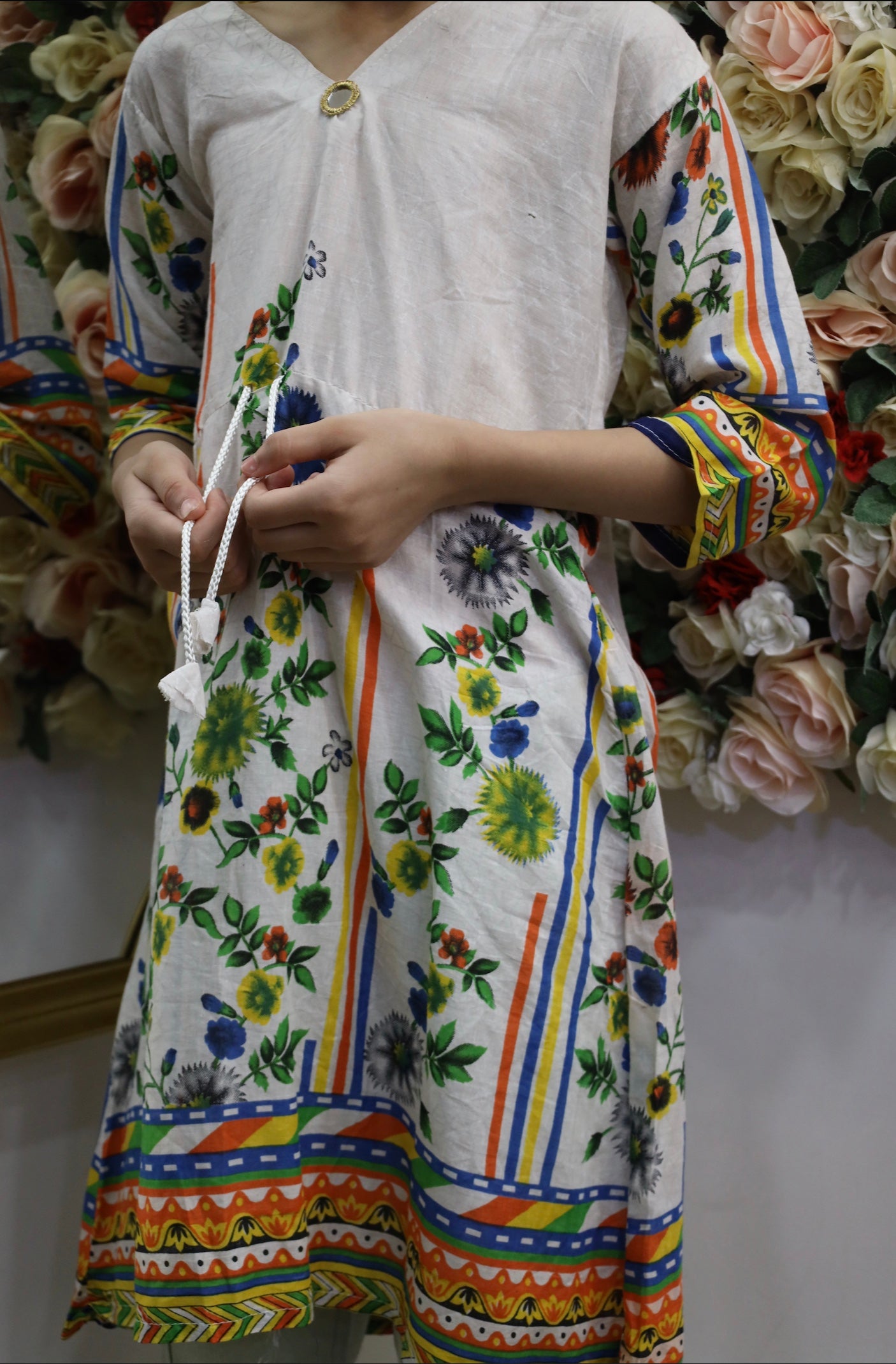Girls' Printed Lawn Frock – White Multicolor | Summer Collection
